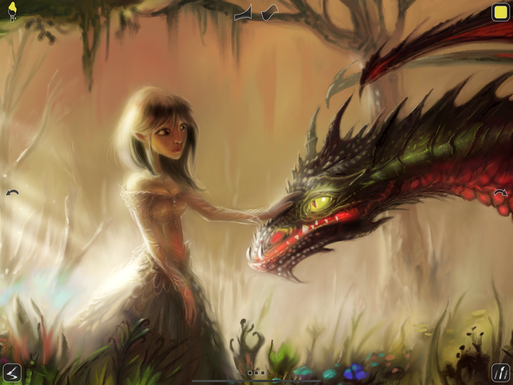 Our proprietary painting engine Sorcery™ takes full advantage of the GPU to render brush strokes with brilliant 64-bit color, laser-sharp sub-pixel precision, and insanely fast speed. While the strokes of a wet oil paint brush look beautiful on their own, the breathtaking blending effects of a dry brush will absolutely stun you. Graze the canvas with just a bit of pressure to add a subtle blur to your artwork or use stronger pressure to actually mix existing colors on the canvas together to create new ones.
