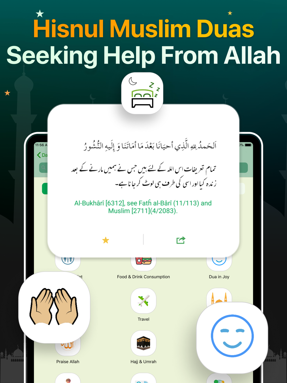● Option to display any translation along with full Arabic text in hi-resolution, Retina graphics in both portrait and landscape viewing. Supports pinch/zoom feature for changing font size.