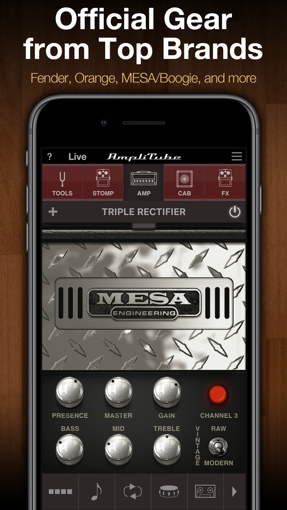 Build your own guitar or bass rig with up to 6 stompbox FX, an amplifier and cabinet with mics. Plug your instrument into your iPhone with one of IK's interfaces like iRig 2 or iRig HD 2, and get ready to be blown away.