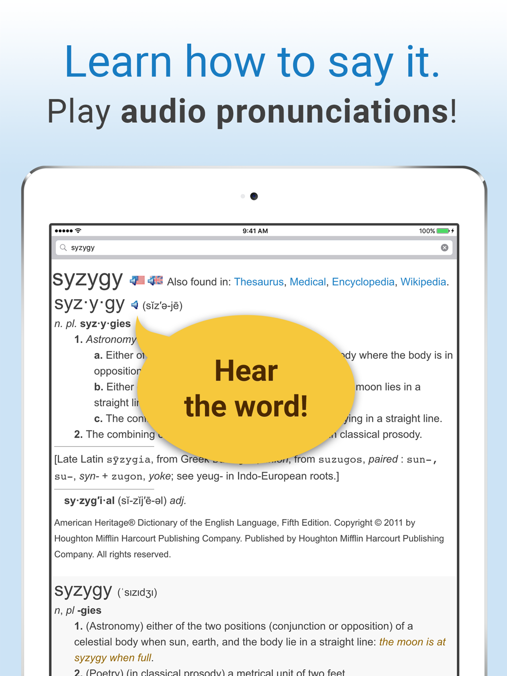 The perfect dictionary app for word lovers and learners of all levels.