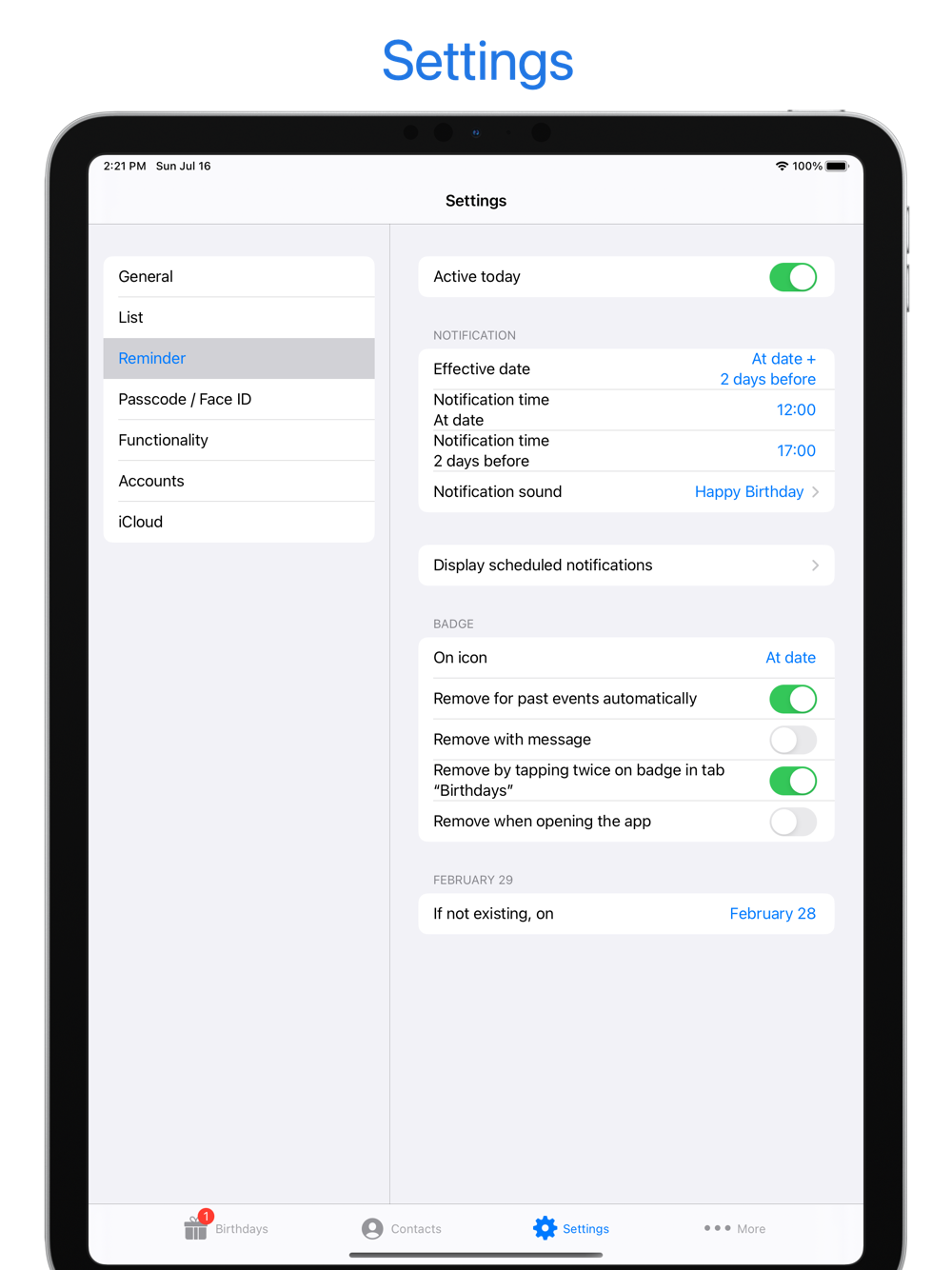 Forget forgetfulness and never miss an important date again with the help of crucial birthday reminders! Receive up to 2 notifications for each birthday to ensure that special day can't slip through the cracks. With the added flexibility of turning off birthday reminders for specific contacts and setting up birthday reminder repeats, you'll always be in the know and ready to celebrate. And to keep you constantly updated, our app features a handy badge on the icon, displaying the number of current events and birthdays happening today.