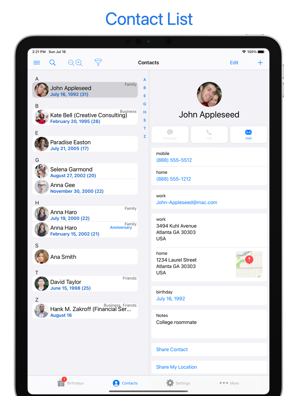 MANAGE YOUR CONTACTS & BIRTHDAY CALENDAR
