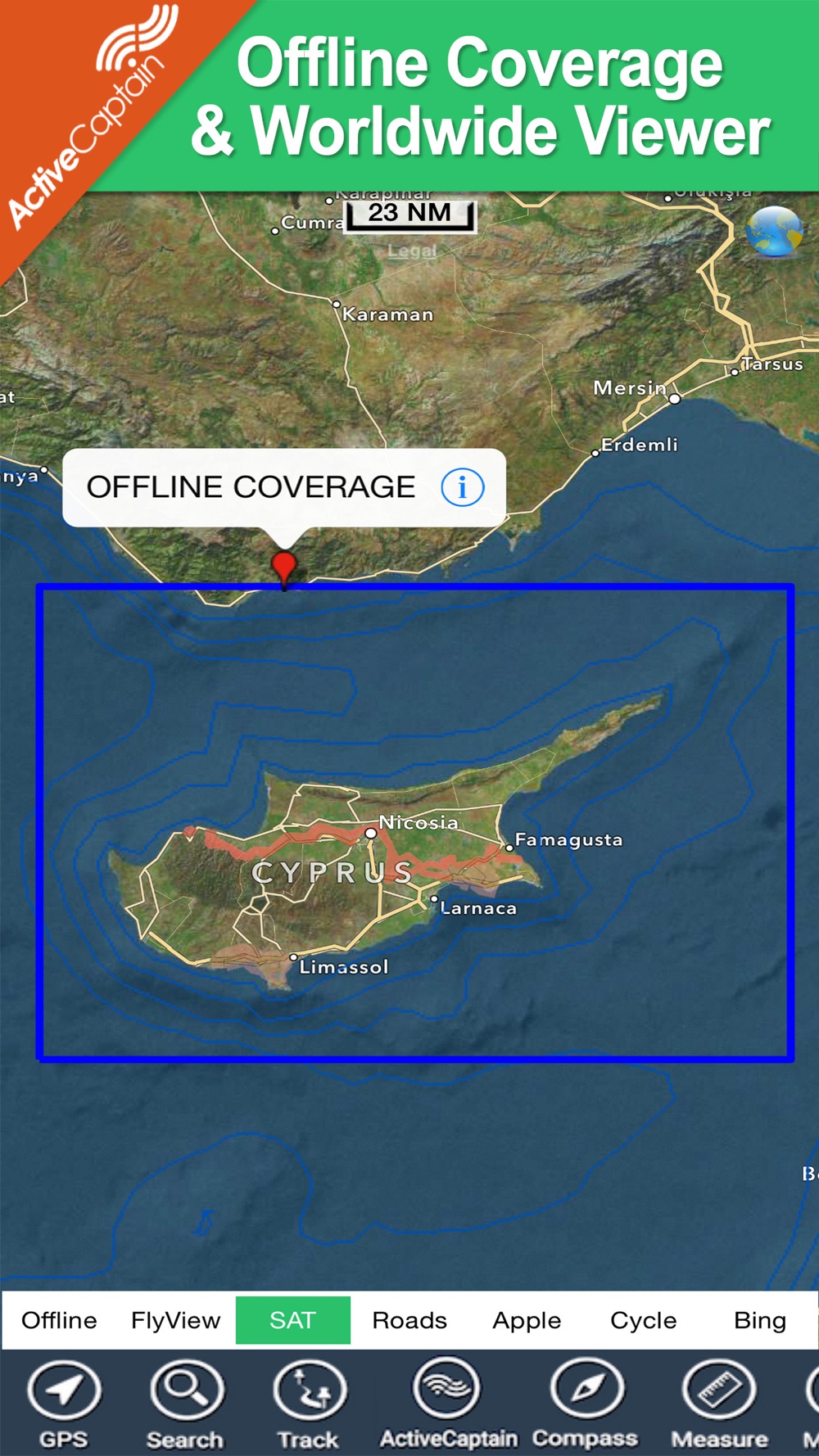 Cyprus coverage resident in the app. It works WITHOUT mobile coverage!