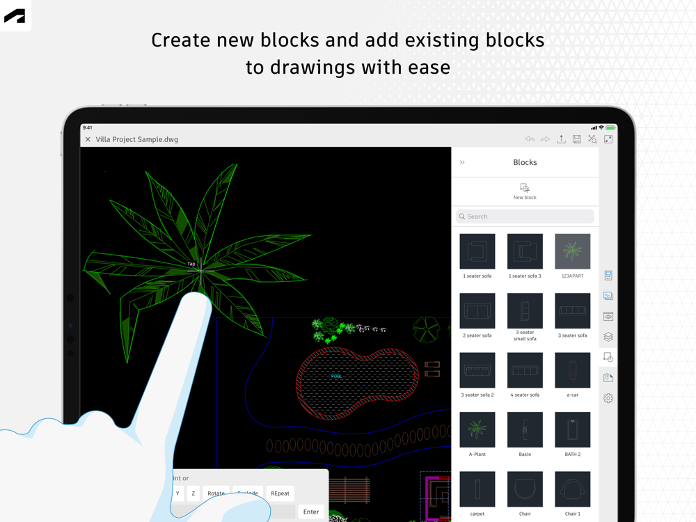 • Insert blocks from your DWG drawing