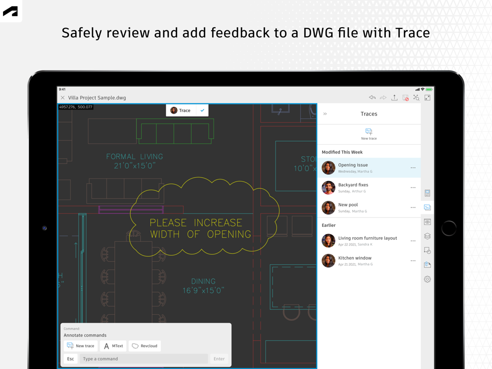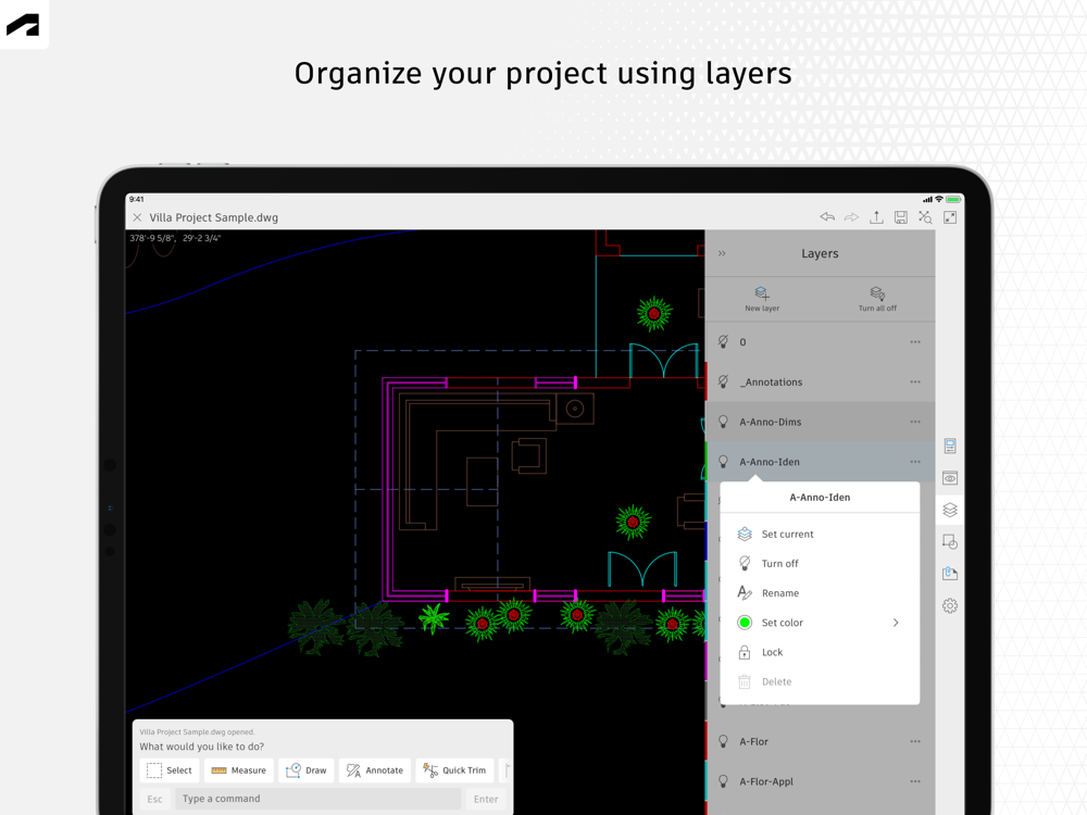 Use familiar AutoCAD drafting tools on your mobile device in a simplified interface, allowing you to access, create, and update DWG™ files anytime, anywhere.