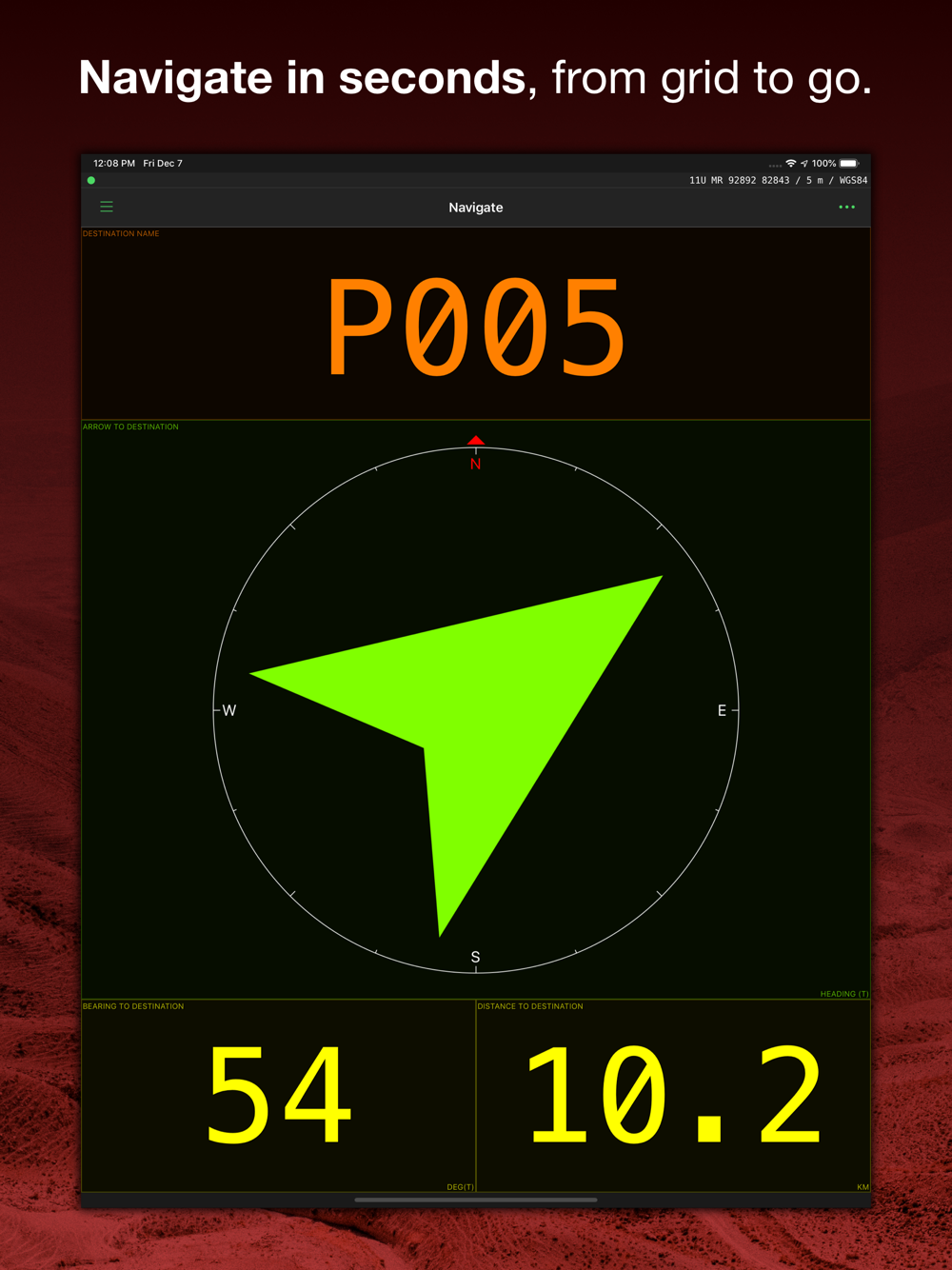 MilGPS is an MGRS/USNG focused premium navigation tool trusted by soldiers, search and rescue personnel and other professional navigators around the world. View your current location and navigate to a waypoint in seconds. Or plan and organize your navigation using the powerful and intuitive mapping and overlay capabilities.