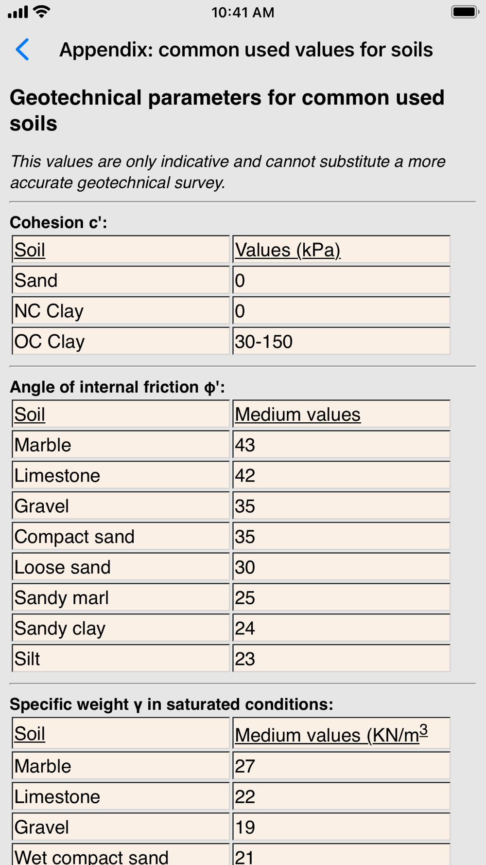 - Theory and standard equations for all formulas used and typical geotechnical parameters available
