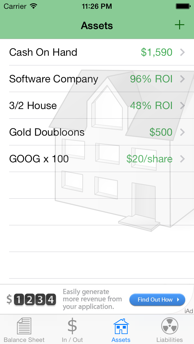The Cashflow Balance Sheet app is a simple and fun app that helps you play financial simulation games and/or track your personal Assets, Liabilties, Income and Expenses... now with Twitter and Facebook sharing!
