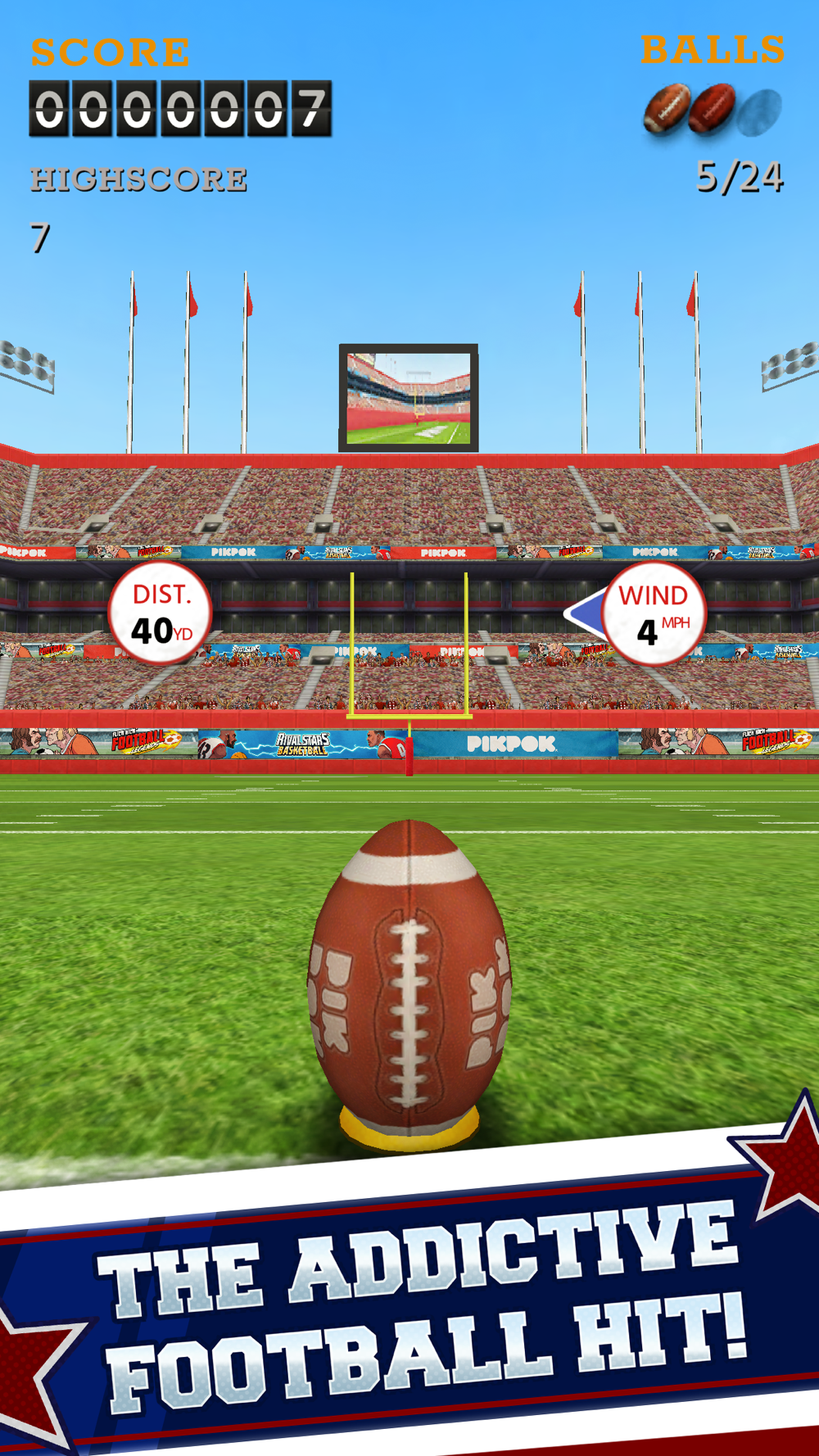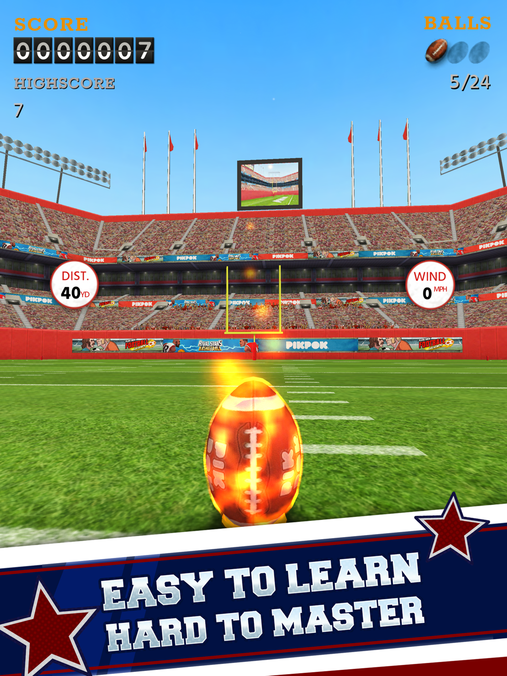 With easy to learn controls and hard to master challenges, Flick Kick® Field Goal is the addictive football game that's impossible to put down! Curve your kicks and earn rewards in ever-changing conditions. Prove your skills in the must-have game for any football fan!