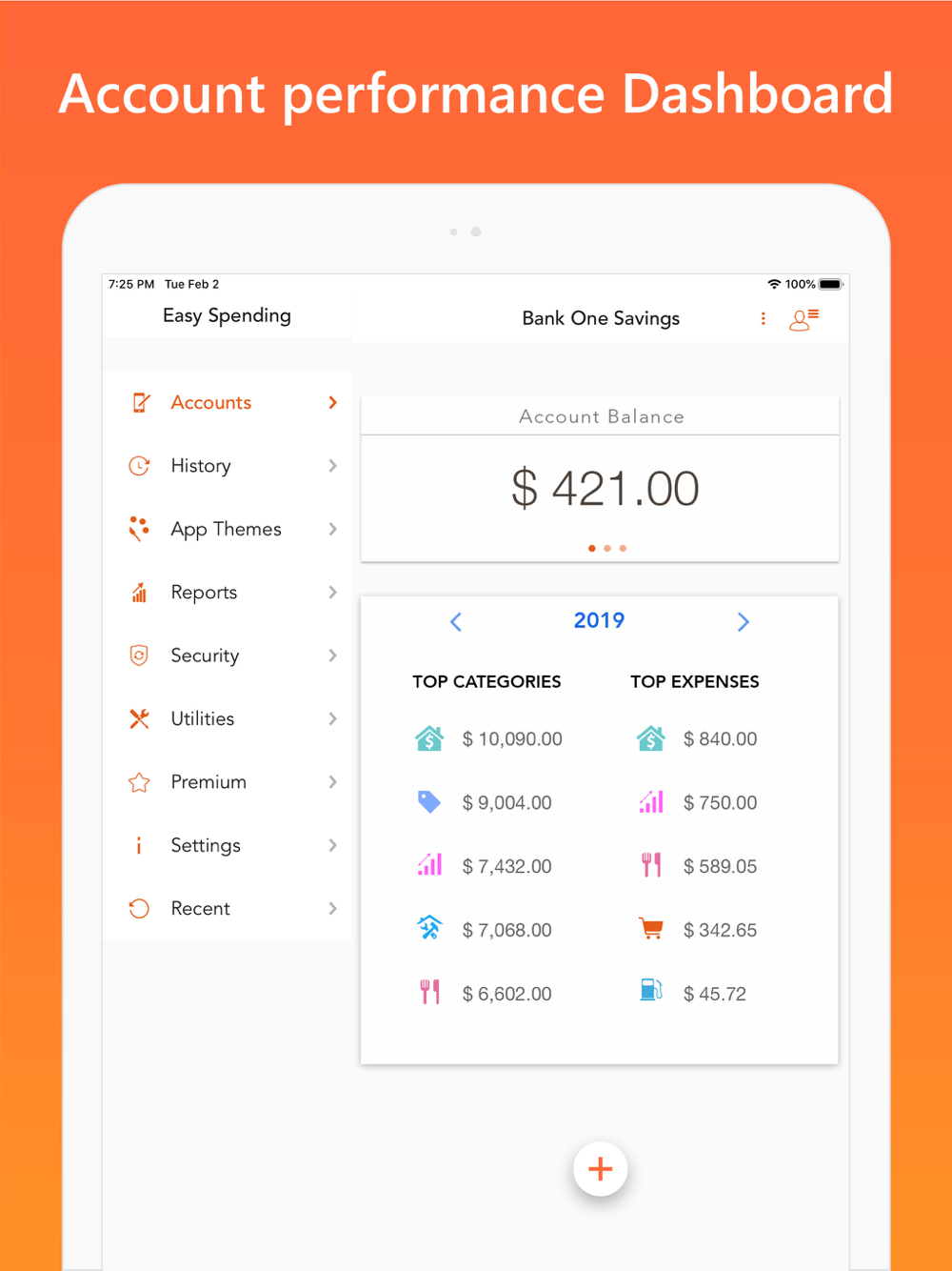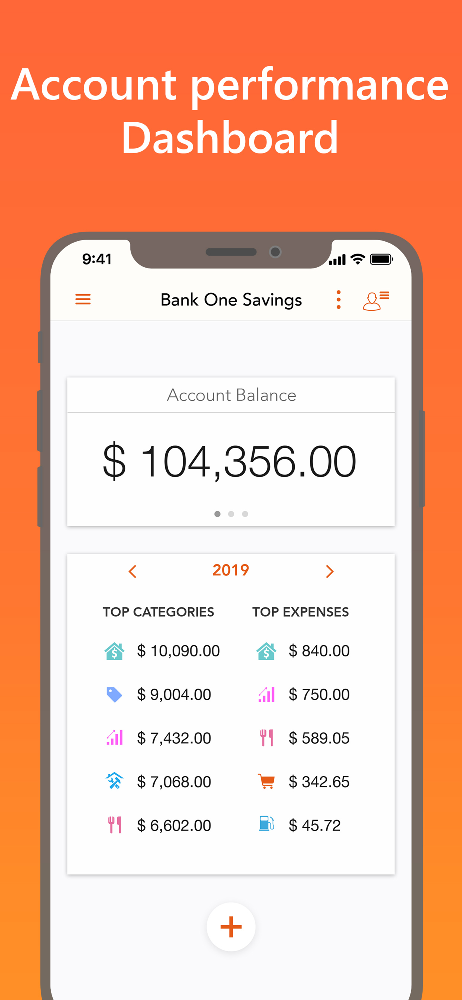 The new Dashboard view provides a quick view of the account performance, and the top expenses and categories right on the dashboard provide an instant view of the cash flow of expenses.