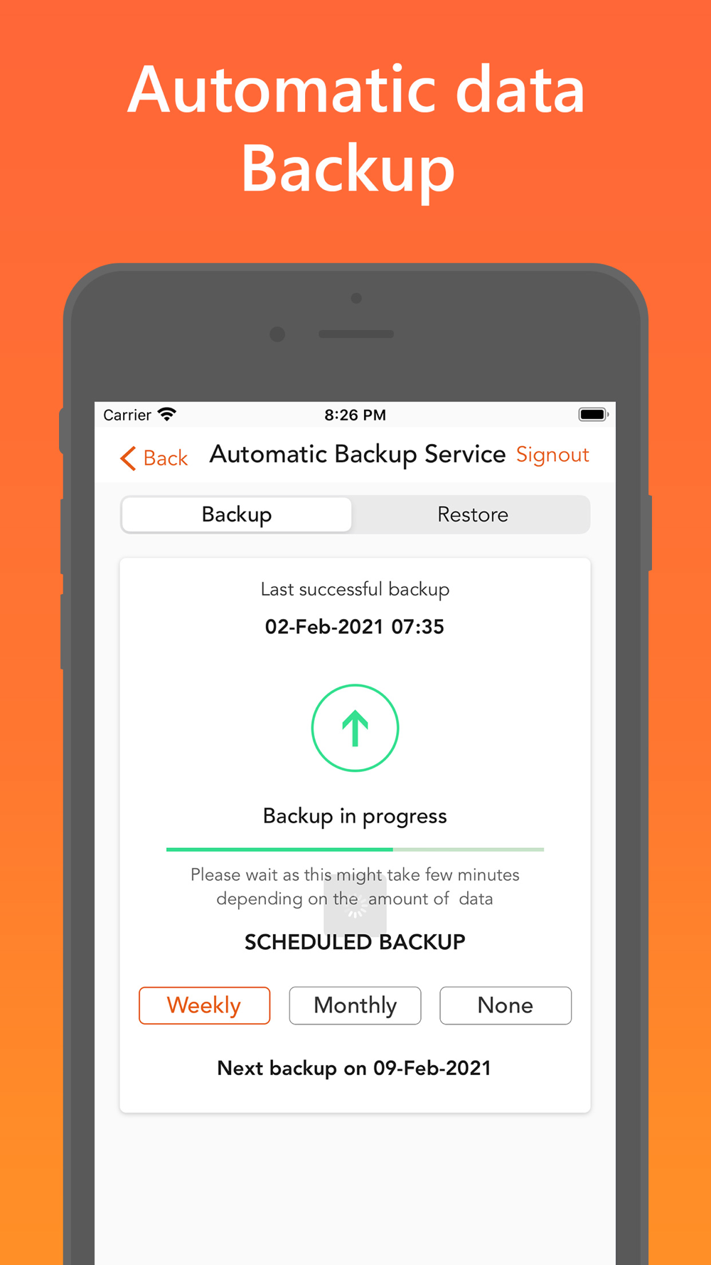 Automatic Backup Service is an auto-renewable In-App purchase that lets you take automatic backup without you having to do anything manually. Just keep using the App, and an automatic backup of all your data is safely stored either weekly or monthly. When your App is deleted by mistake or phone is replaced it is a breeze to restore your data back.