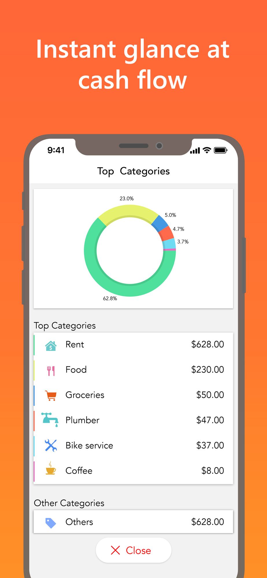 $ Doughnut chart report gives a clean break up of where your money is going.
