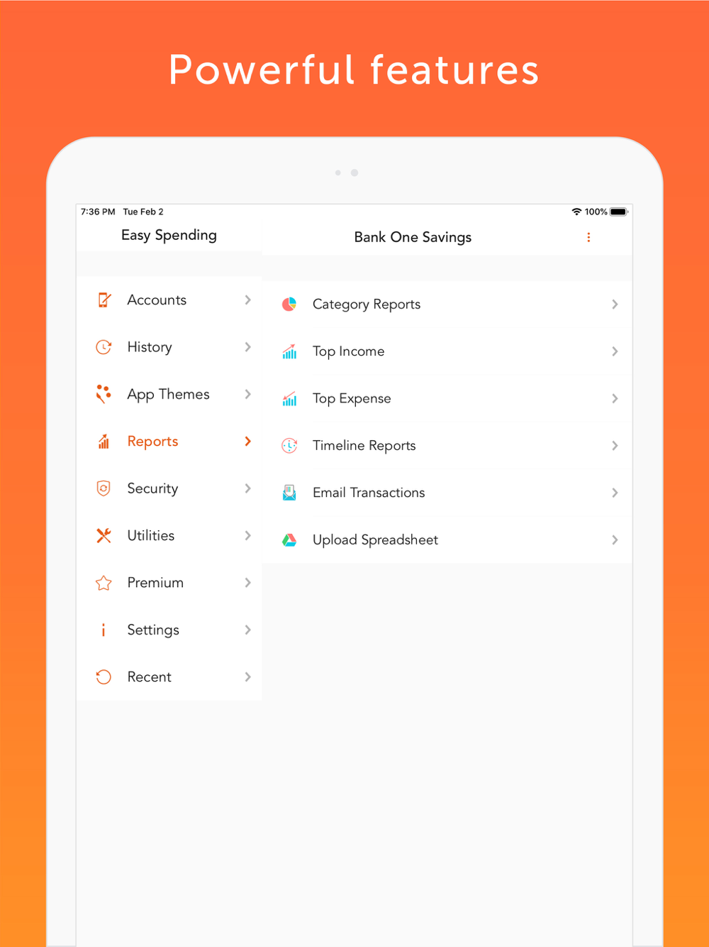 Easy Spending also helps you in yearly tax preparation reports, so that filing of your taxes is just a tap away.