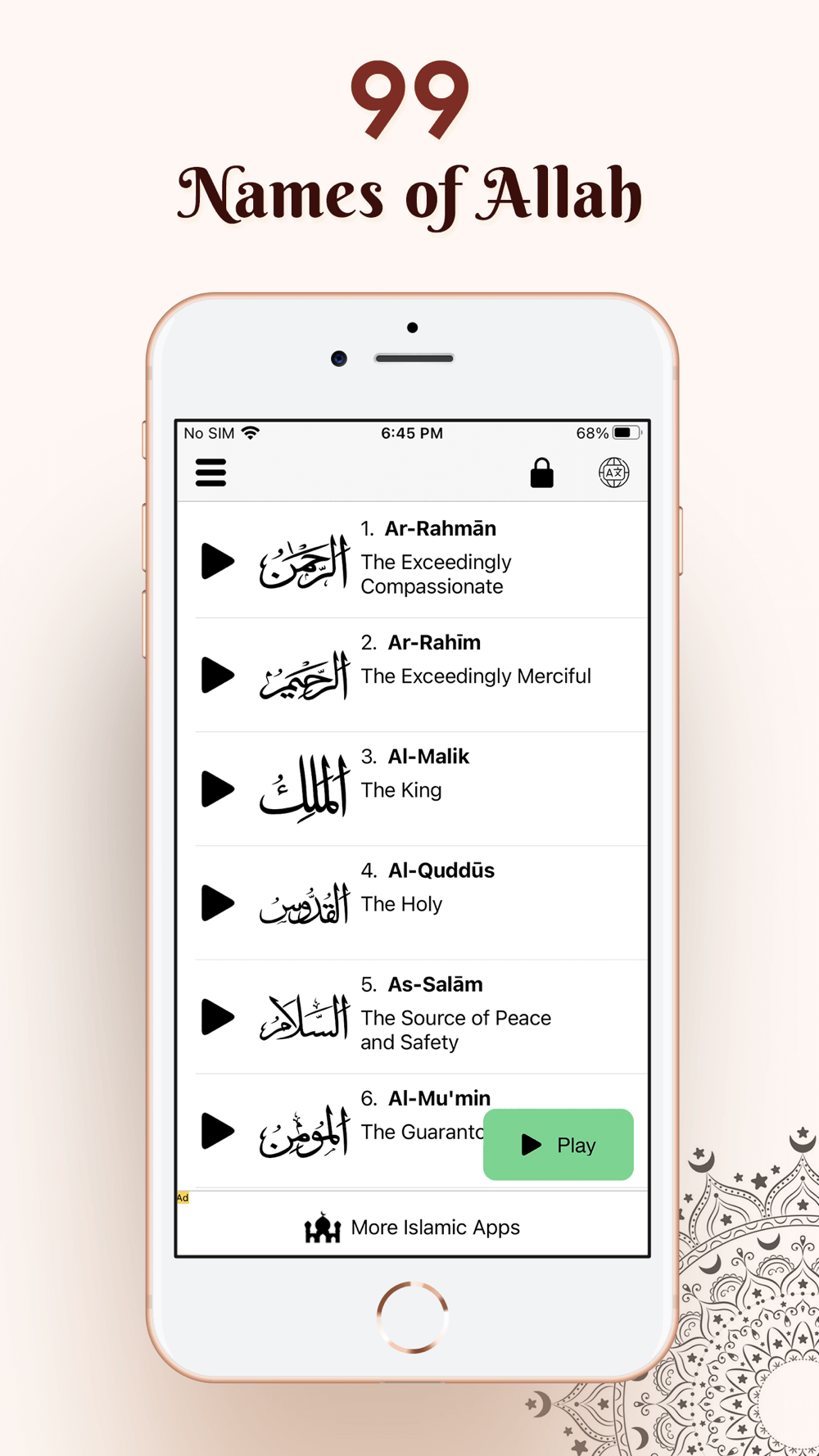 One of the best Islamic apps for worldwide followers of Islam and the Muslim community to read, listen to, and memorize the beautiful 99 Names of Allah (Asmaul Husna) on your iPod, iPad, and iPhone.
