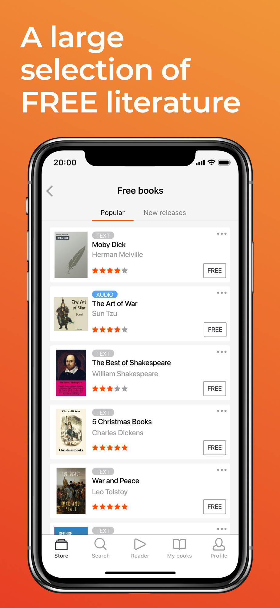 · The first 20% of any book is free. What if you don’t like it? Read and choose which books to get.