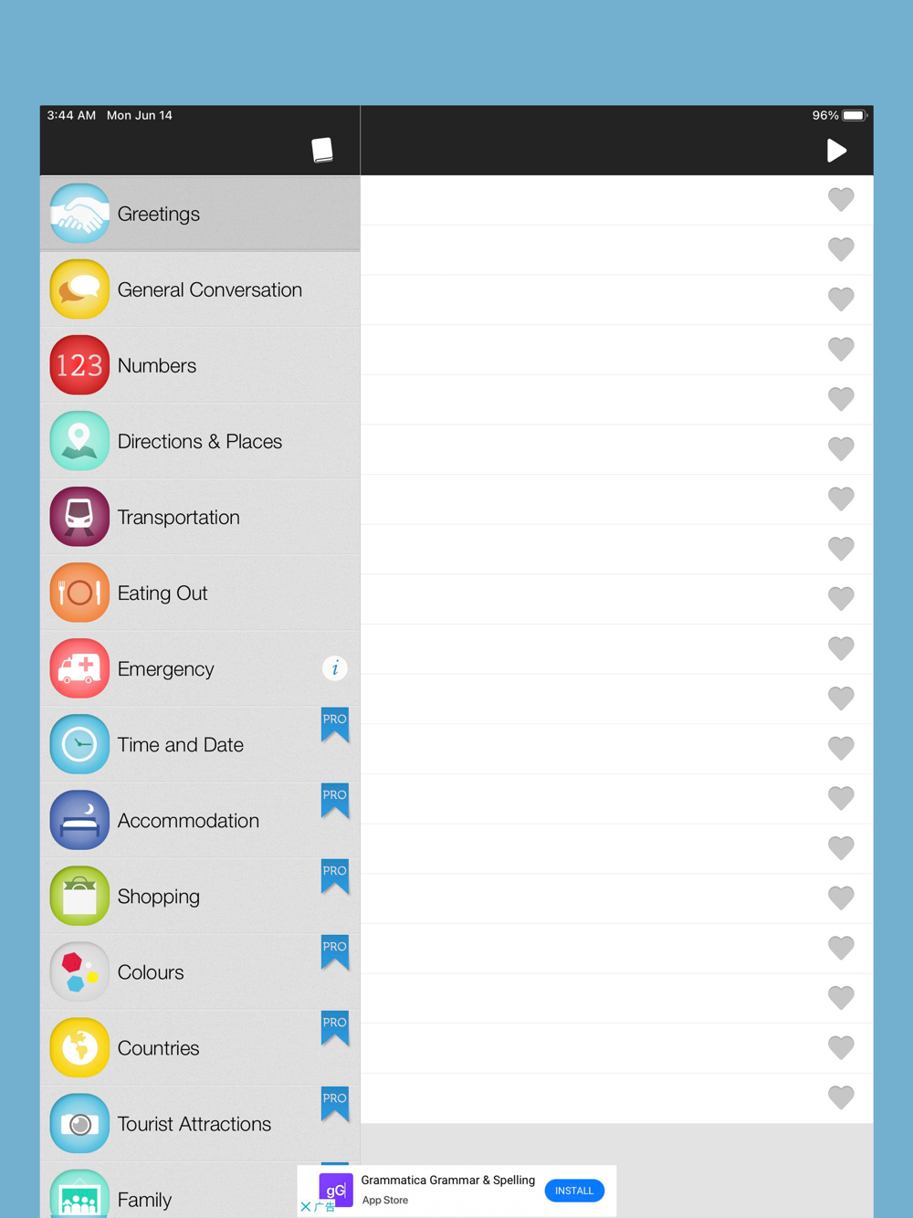 The Japanese language app will allow you to learn the new language quickly and easily. This Japanese text app has 200+ words and phrases for free, then you can decide whether or not you want to upgrade for more content. You will be able to learn Japanese vocabulary, sentences and more using this fabulous language app. If you're wondering how to learn Japanese? Try our Japanese learning app and learn to speak Japanese within a very short time.