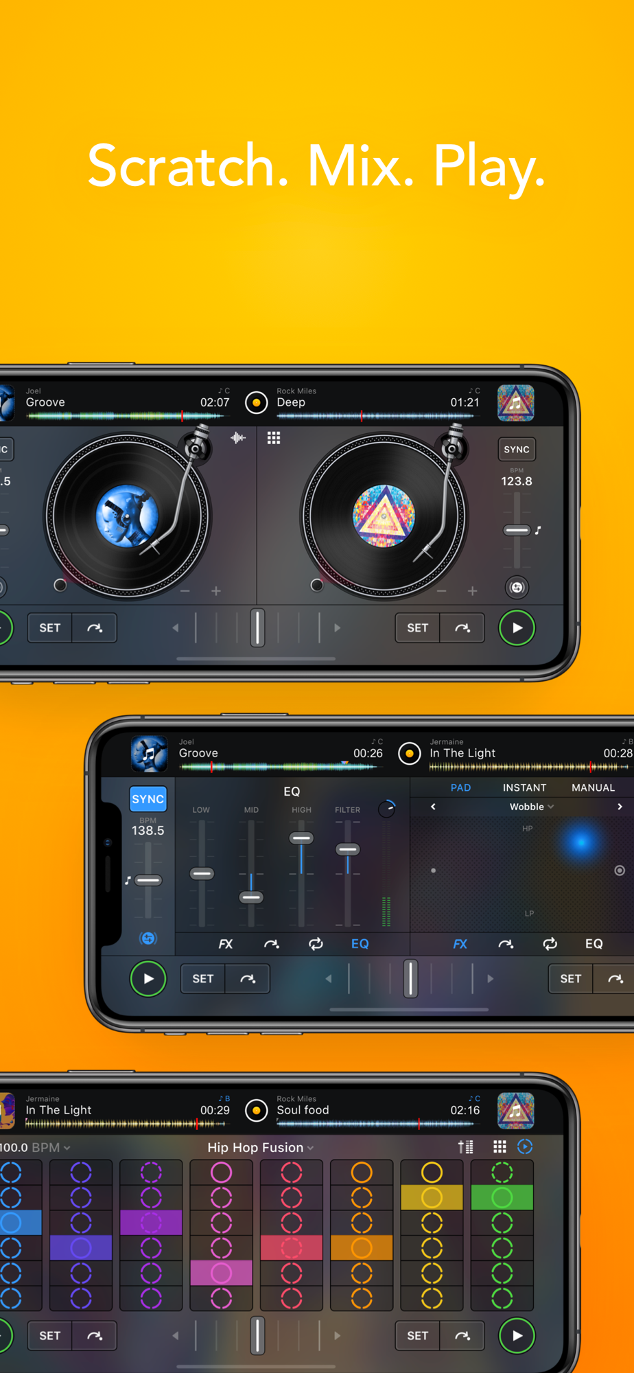 djay Pro’s all-new, modern interface is built around a sophisticated integration with your music library, giving you instant access to millions of tracks. Pristine sound quality and a powerful set of features including advanced mixing tools, four decks, high-definition waveforms, video mixing and hardware integration give you endless creative flexibility to reinvent your DJ sets.