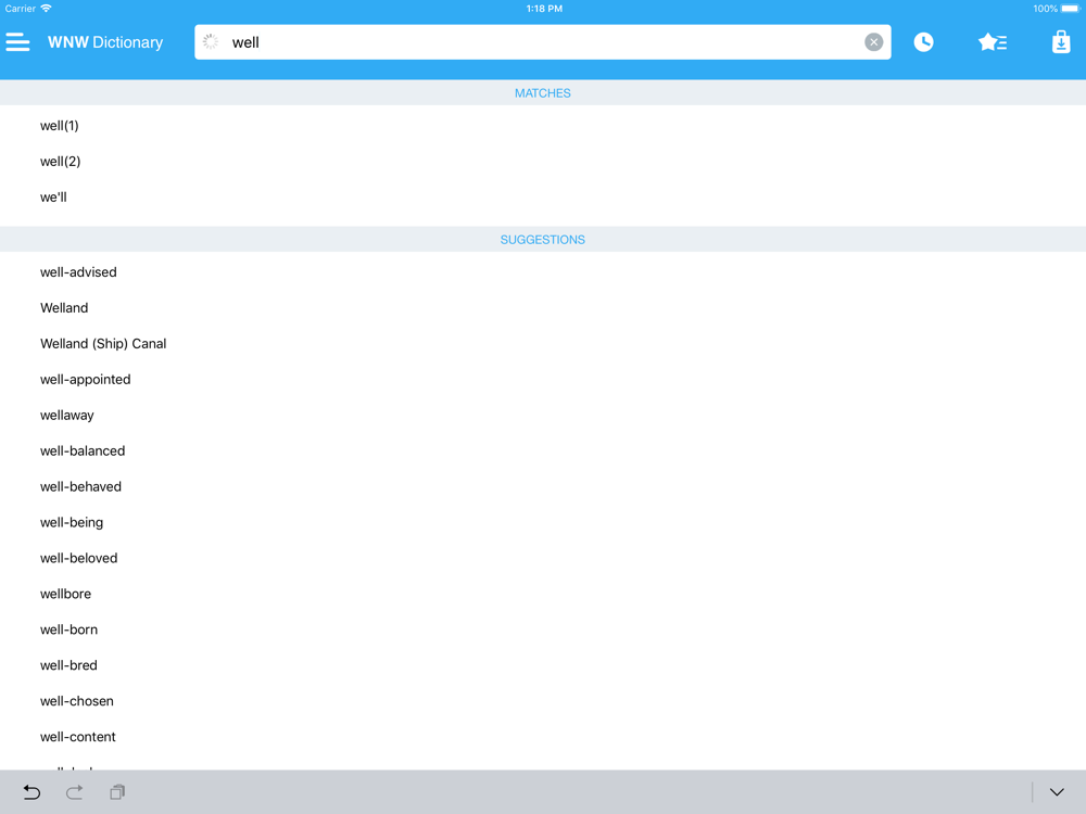 • Search autocomplete helps you find words quickly by displaying predictions as you type.