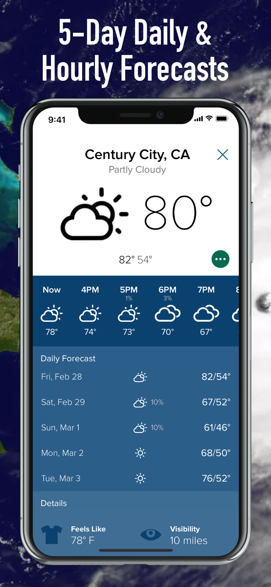 • Precipitation Alerts: Get a push notification precipitation is detected up to 10 miles away