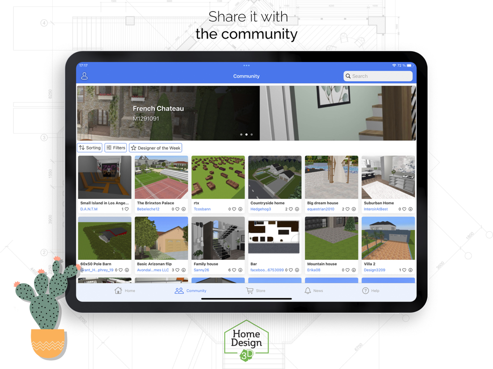 - Share your best creations with the Home Design 3D community within the app (NEW!) and on www.homedesign3d.net