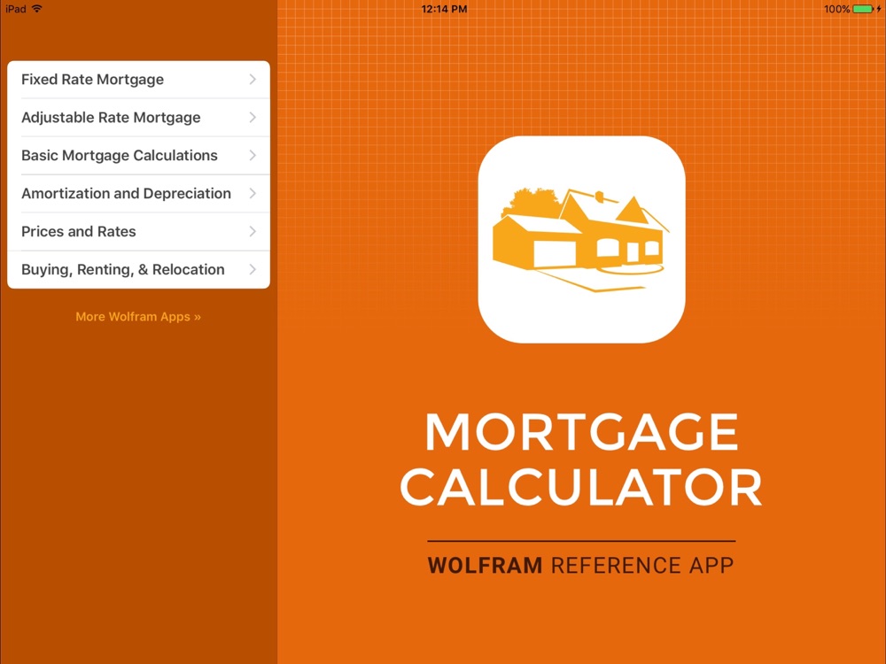 Looking for the ultimate mortgage calculator? The Wolfram Mortgage Calculator Reference App is that and more with basic and advanced options for fixed and adjustable rate mortgages and bonus features to assist with your home buying decision. Compute the monthly payment, interest rate, and loan term that will be best for you, and view payment and amortization schedules for each.