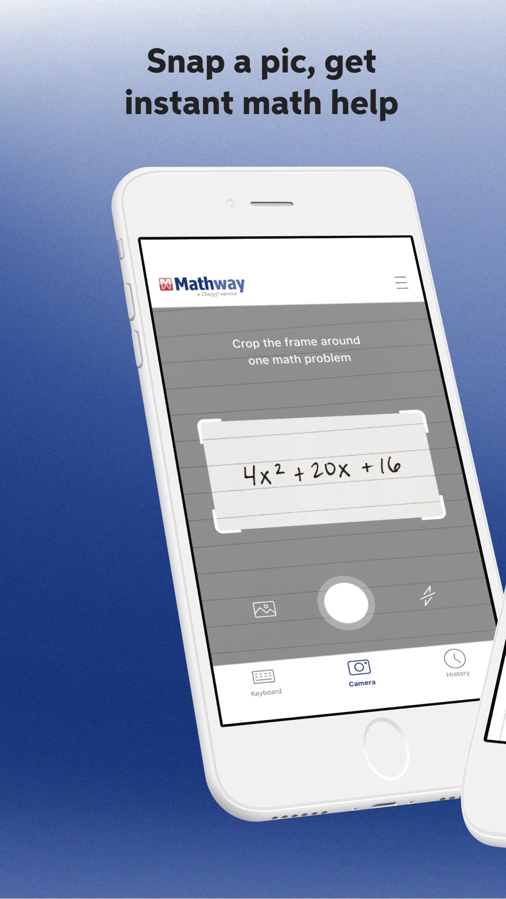 Mathway is the world’s smartest math calculator for algebra, graphing, calculus and more! Mathway gives you unlimited access to math solutions that can help you understand complex concepts. Simply point your camera and snap a photo or type your math homework question for step-by-step answers.