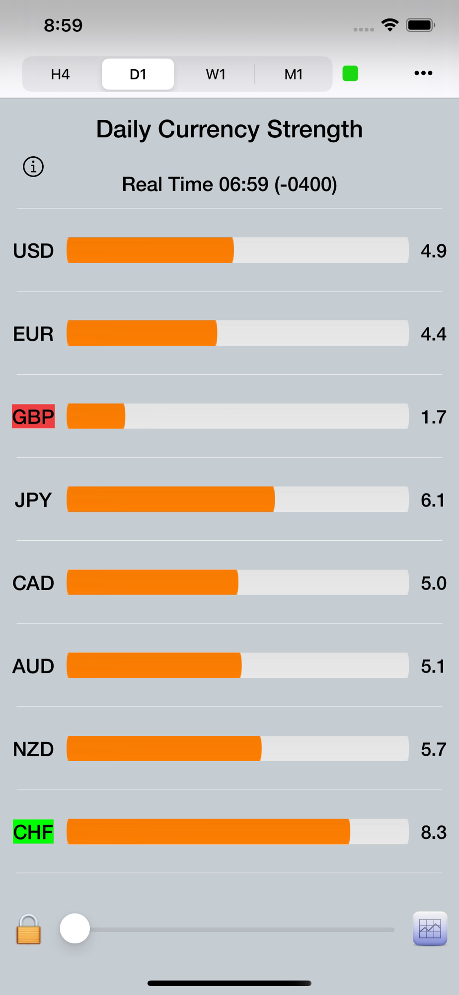 Streaming currency strength data feed - fast updates, low latency. Accurate and reliable