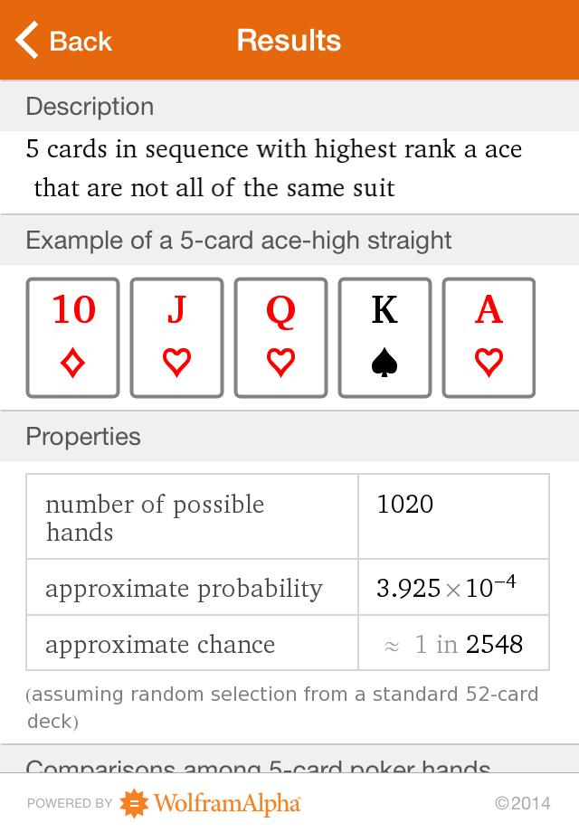 The Wolfram Gaming Odds Reference App draws on the computational power of Wolfram|Alpha's supercomputers over a 3G, 4G, or Wi-Fi connection.