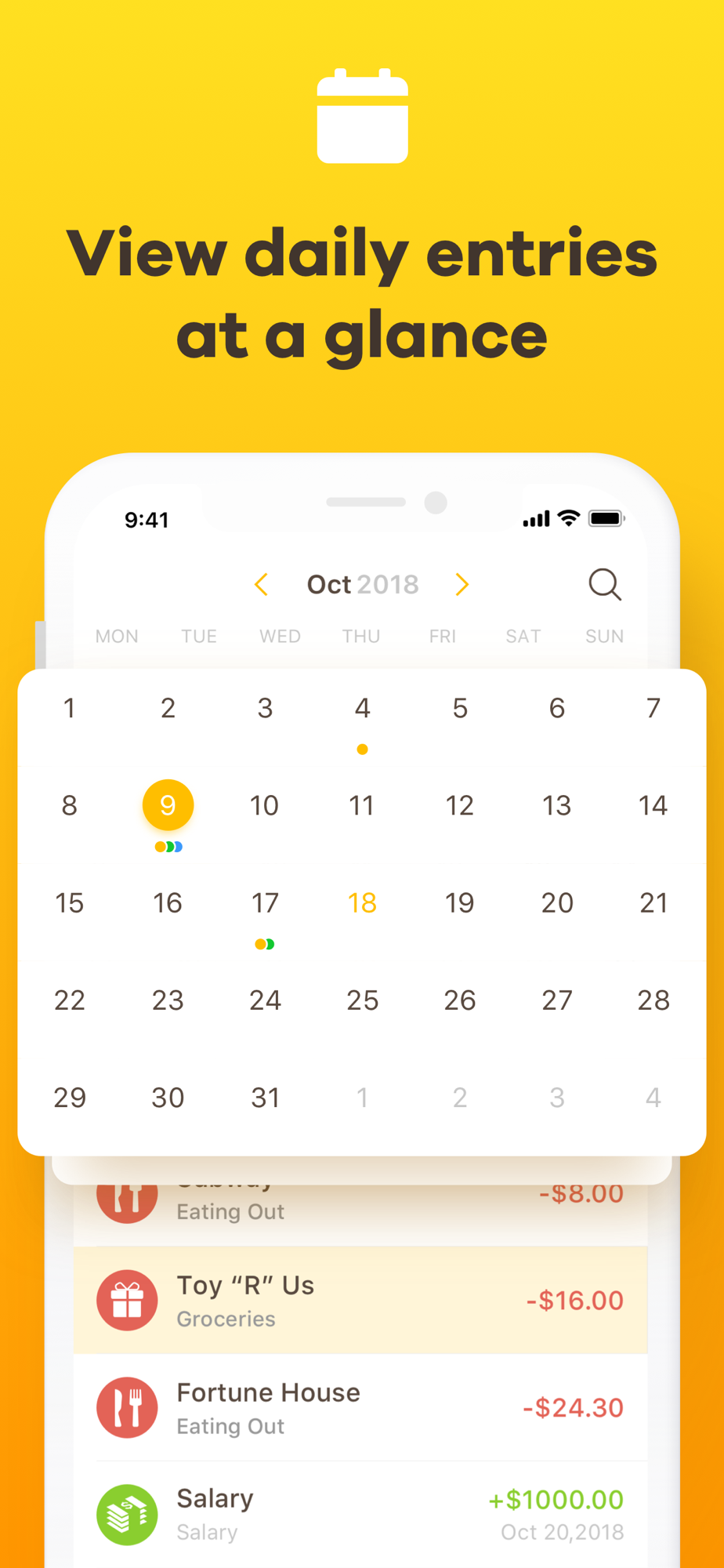 -Filter transactions by tapping a date or selecting multiple dates on the calendar.
