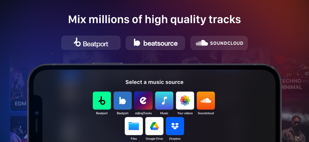 - Compatibility with Beatport, SoundCloud Go +, iTunes, Google Drive, Dropbox, Files, iCloud Drive, files and more to come !*
