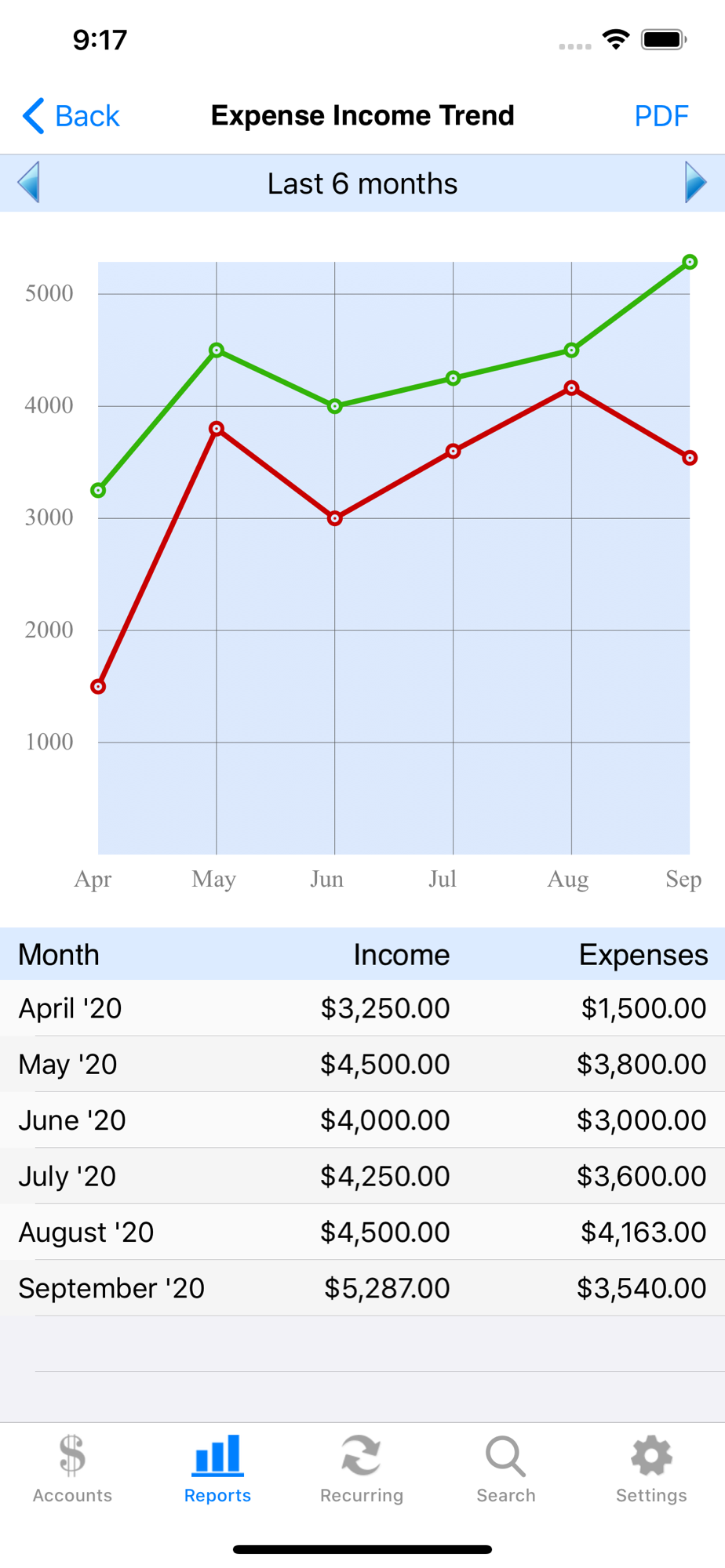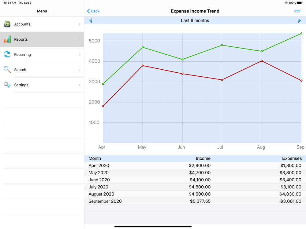 Review your monthly income vs. expense, spending by category, or income by category summaries with beautiful graphs and reports.