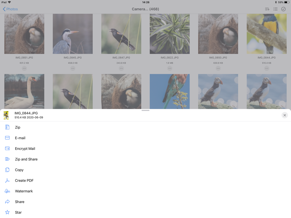 • Browse your Photo Album and easily multi-select, zip and share photo collections