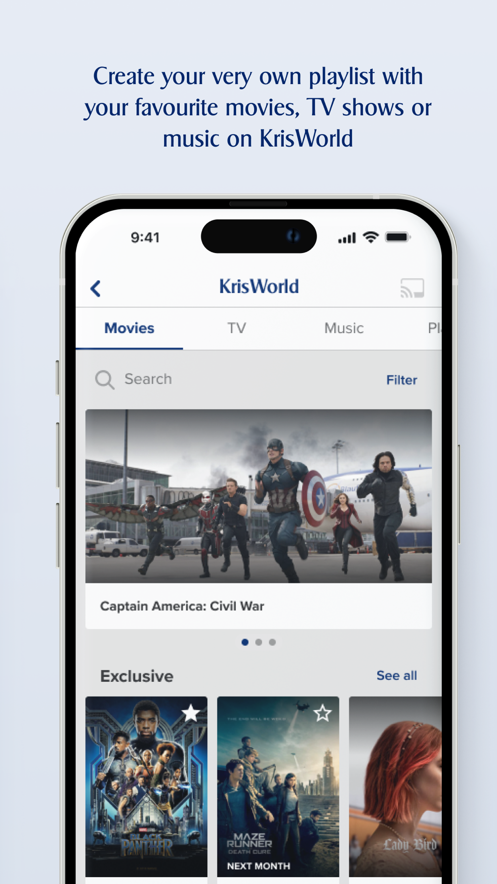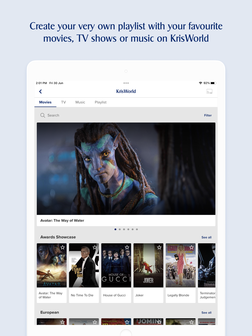 Find out what’s playing on our award-winning KrisWorld inflight entertainment system. Curate playlists on your app and pick up right where you last left off between flights, or view your flight’s progress***.