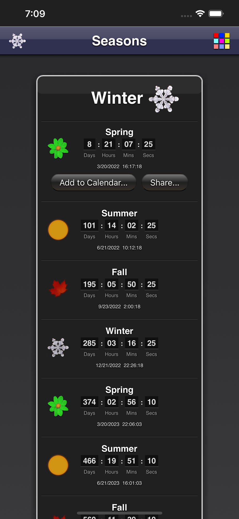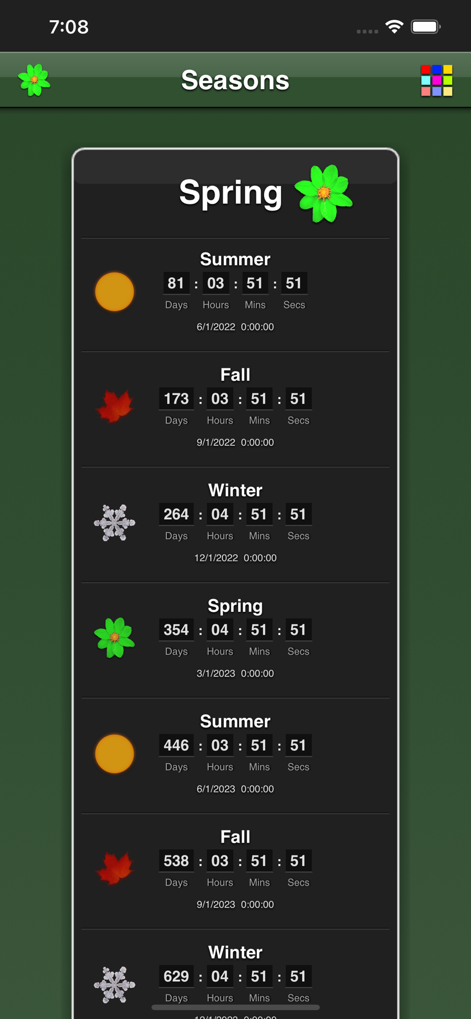 - countdown to the next seasons