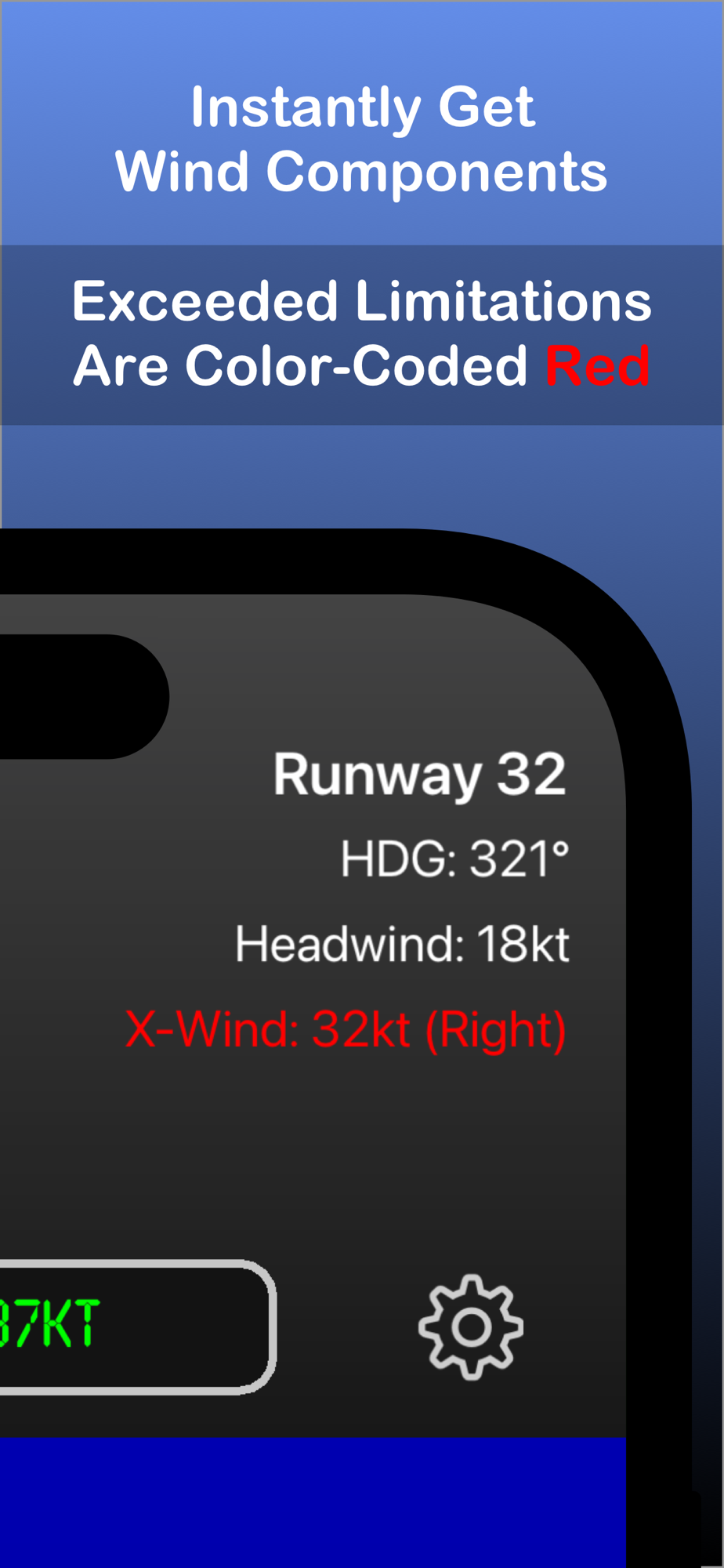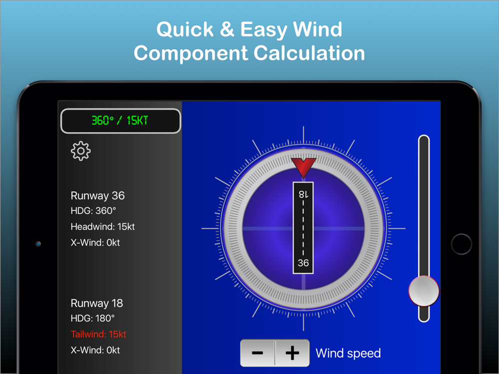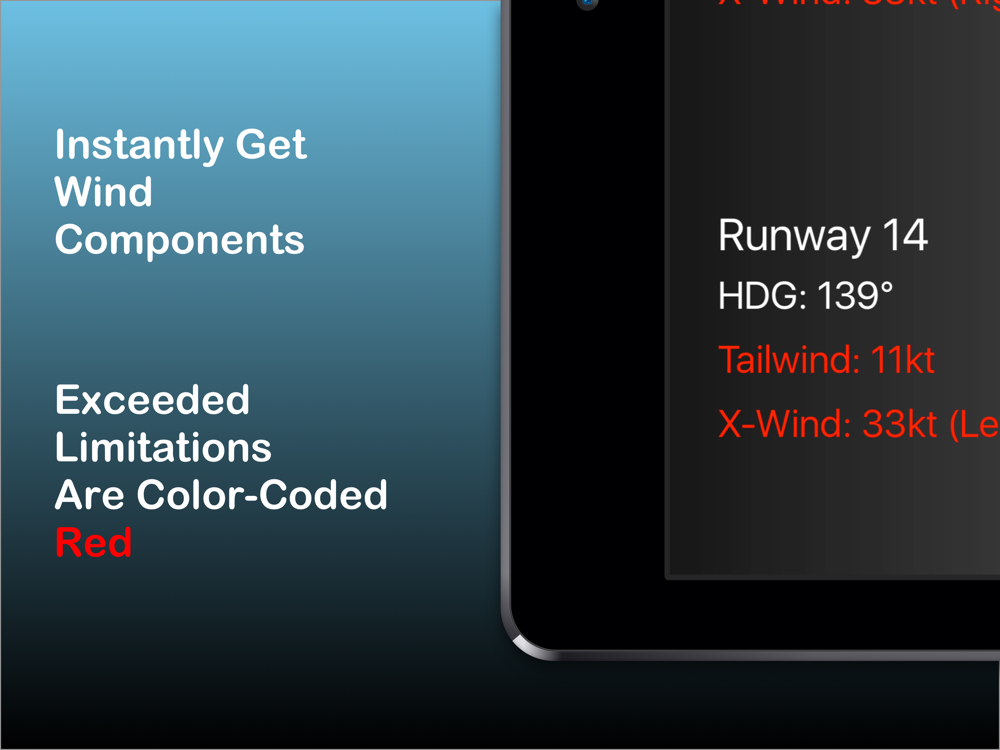 FlightWinds calculates crosswind, tailwind and headwind components for takeoff and landing and displays them in a user-friendly way.