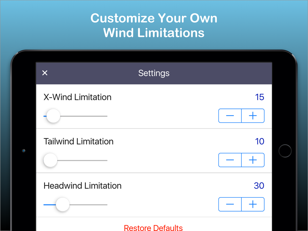FlightWinds helps you assure your are taking off and landing within your aircraft-specific, or personal wind limitations.