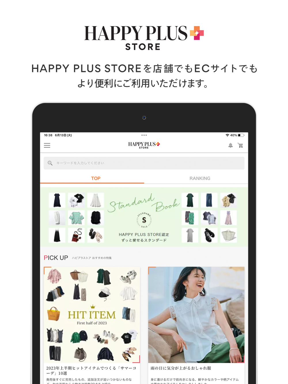 HAPPY PLUS STORE を店舗でもECサイトでもより便利にご利用いただくためのアプリです。