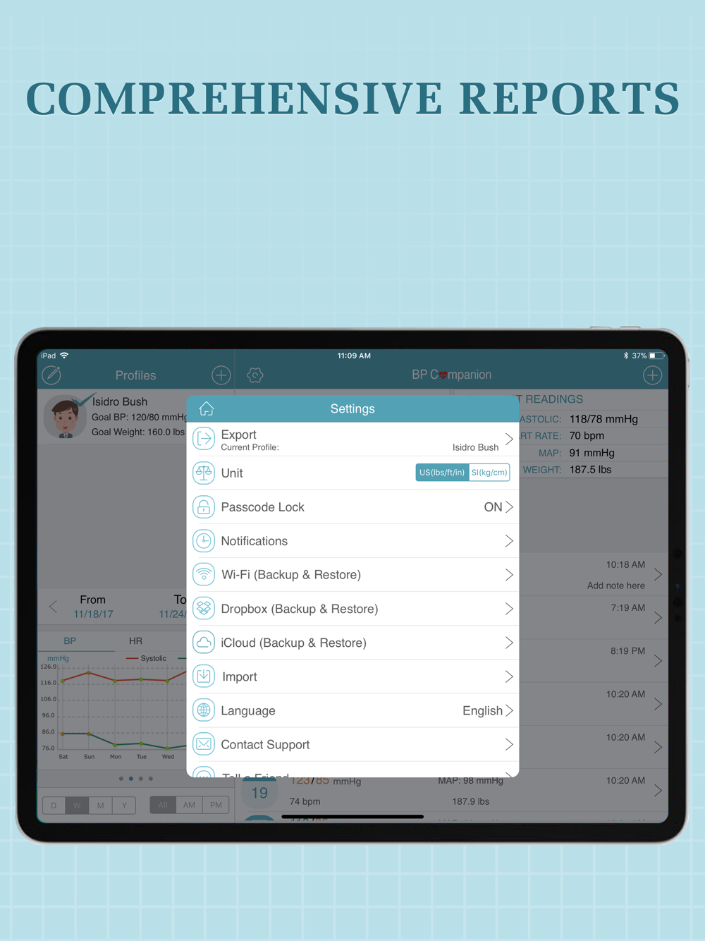 Blood Pressure Companion is a blood pressure, heart rate and weight tracker.
