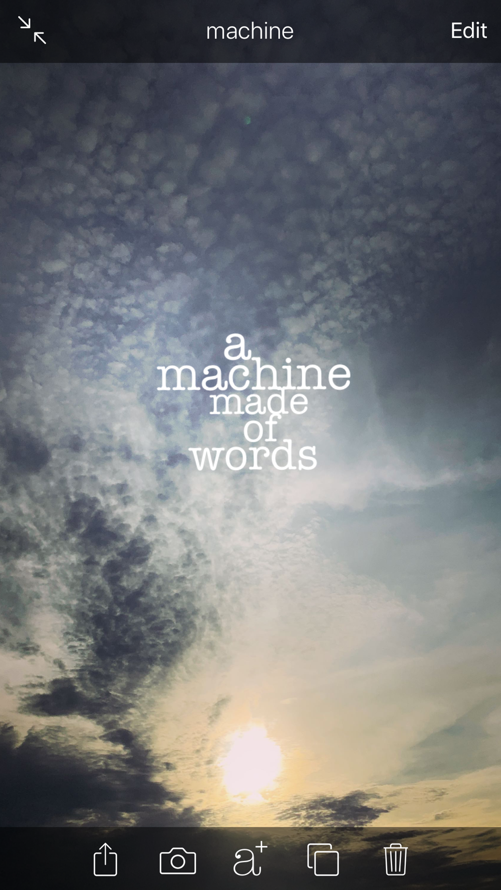 Poetics is a visual poetry app, developing the concept of an infinitely editable, object-oriented poetry.