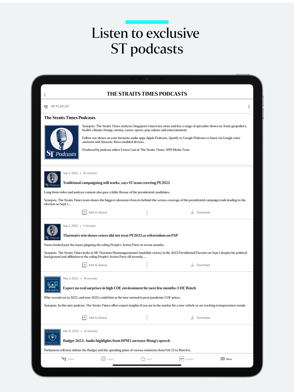 Stay on top of developments in Singapore and around the world with trusted reporting and in-depth analyses from The Straits Times journalists. The ST app is free to download, and subscribers enjoy unlimited access.