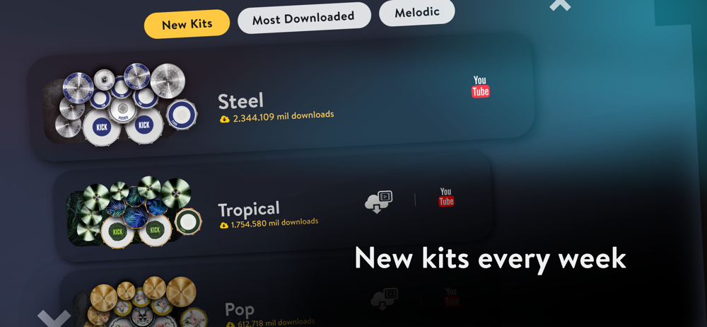 Design your own drum kit and share it, as well as videos of your performances, with your friends and on social media!