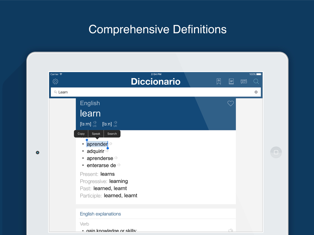 The Spanish English Dictionary & Translator app enables you to search Spanish & English words with definitions, examples, pronunciation, and more.
