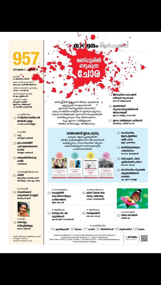 But it's not the quantitative merit that sets it apart. It places great value on quality, truth and credibility. Madhyamam, run by a Public Charitable Trust, is not linked to any interest group or business houses. Its news is often rated the most independent and truthful and its editorial fearless and impartial. The paper does not accept advertisements that exploit women's honour and offend human dignity, titillate base emotions, promote superstitions or dishonest business. The many public interest campaigns Madhyamam initiated by its investigative reporting, sacrificing much advertisement income, have helped to create a fiercely loyal readership for the paper. And the circle is growing wherever Malayalis live.