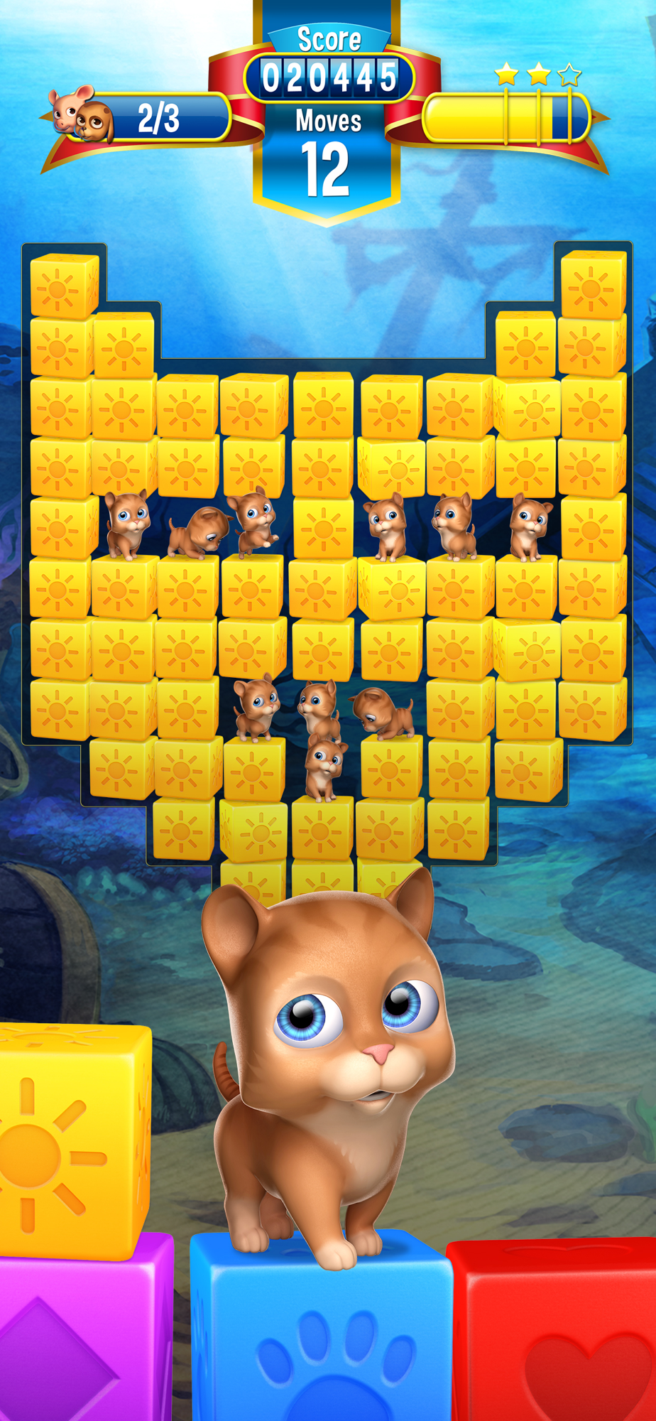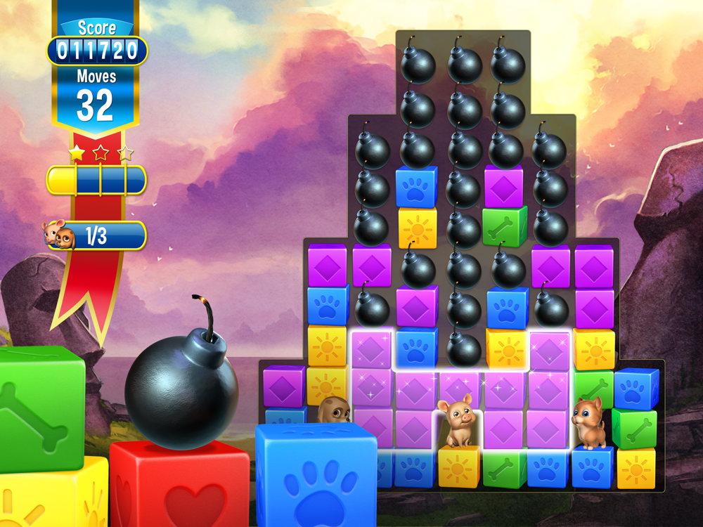 Match two or more blocks of the same color to clear the level and save the pets! It’s your job to create matches and free the pets, but remember - moves are limited so plan them carefully. Your puzzle skills will be tested with hours of cube matching fun!