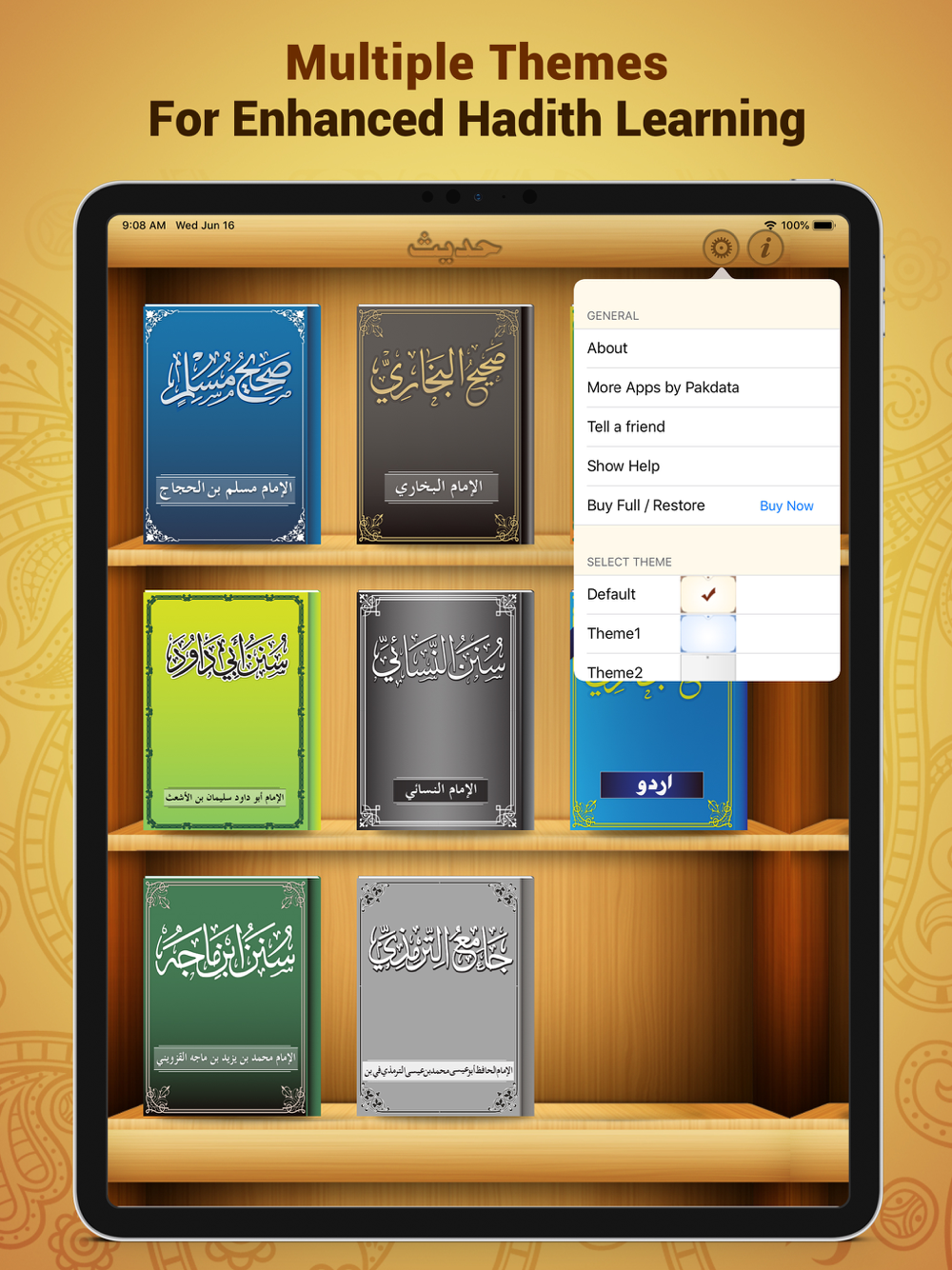 أقوال النبي محمد (ص)، هذا التطبيق يحتوي على كتب الحديث الستة الرئيسية: صحيح البخاري، صحيح المسلم، جامع الترمذي، سنن ابي داود، سنن النسائي، سنن ابن ماجة في اللغة العربية.