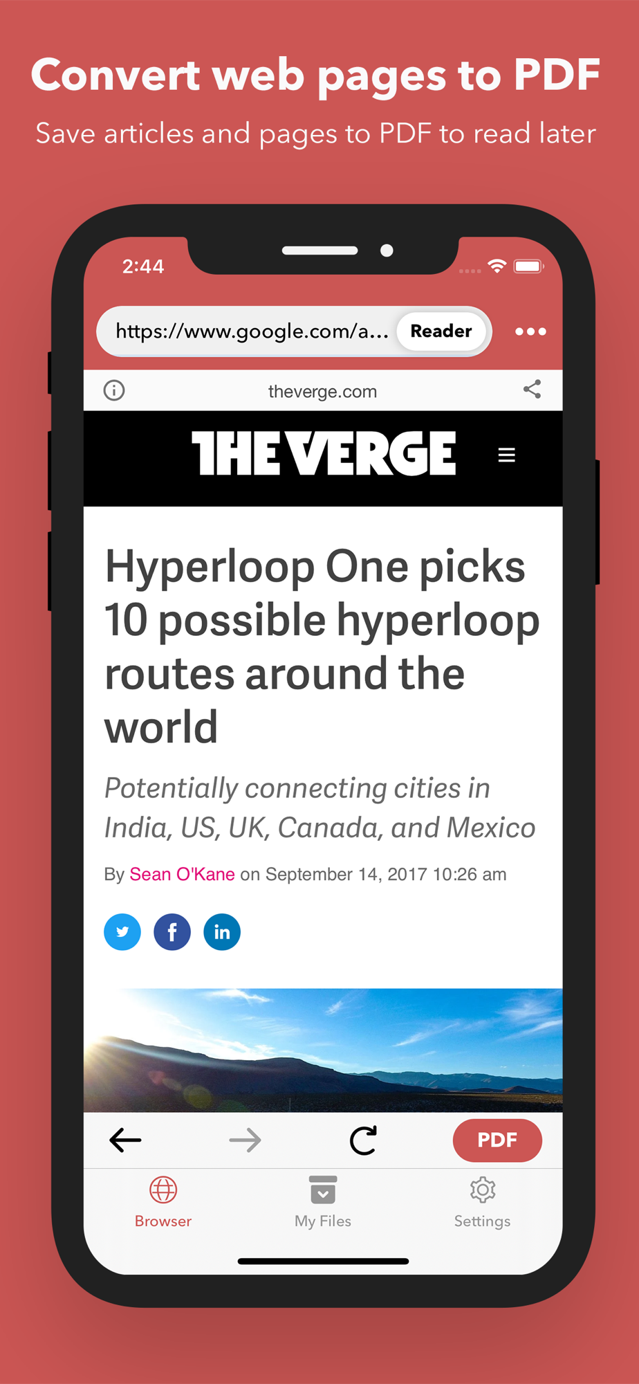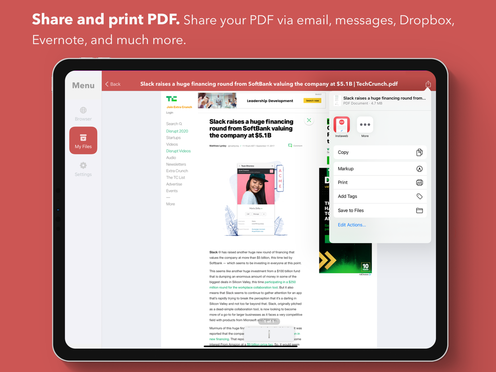 InstaWeb features a clean reading view to enjoy your favorite articles or online magazines. Also, you can convert your clean article to PDF for offline reading!
