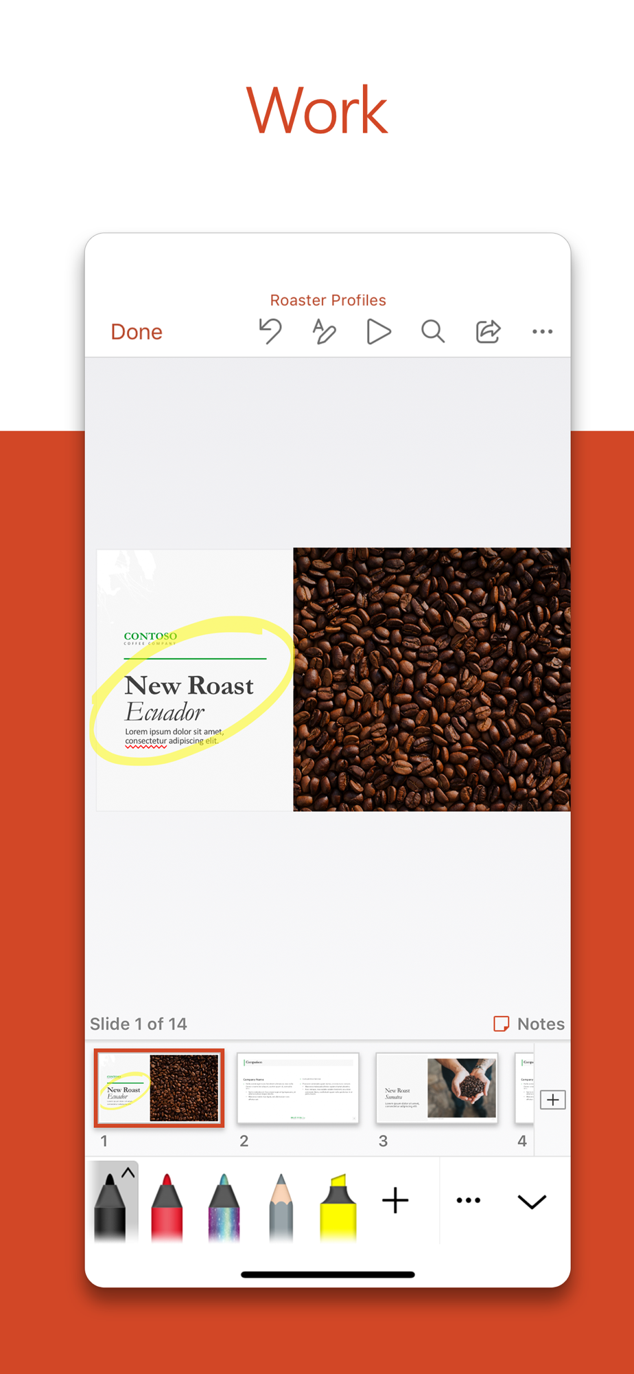 • Never miss a beat with PowerPoint on the go. You can make new presentations or continue working on existing ones.