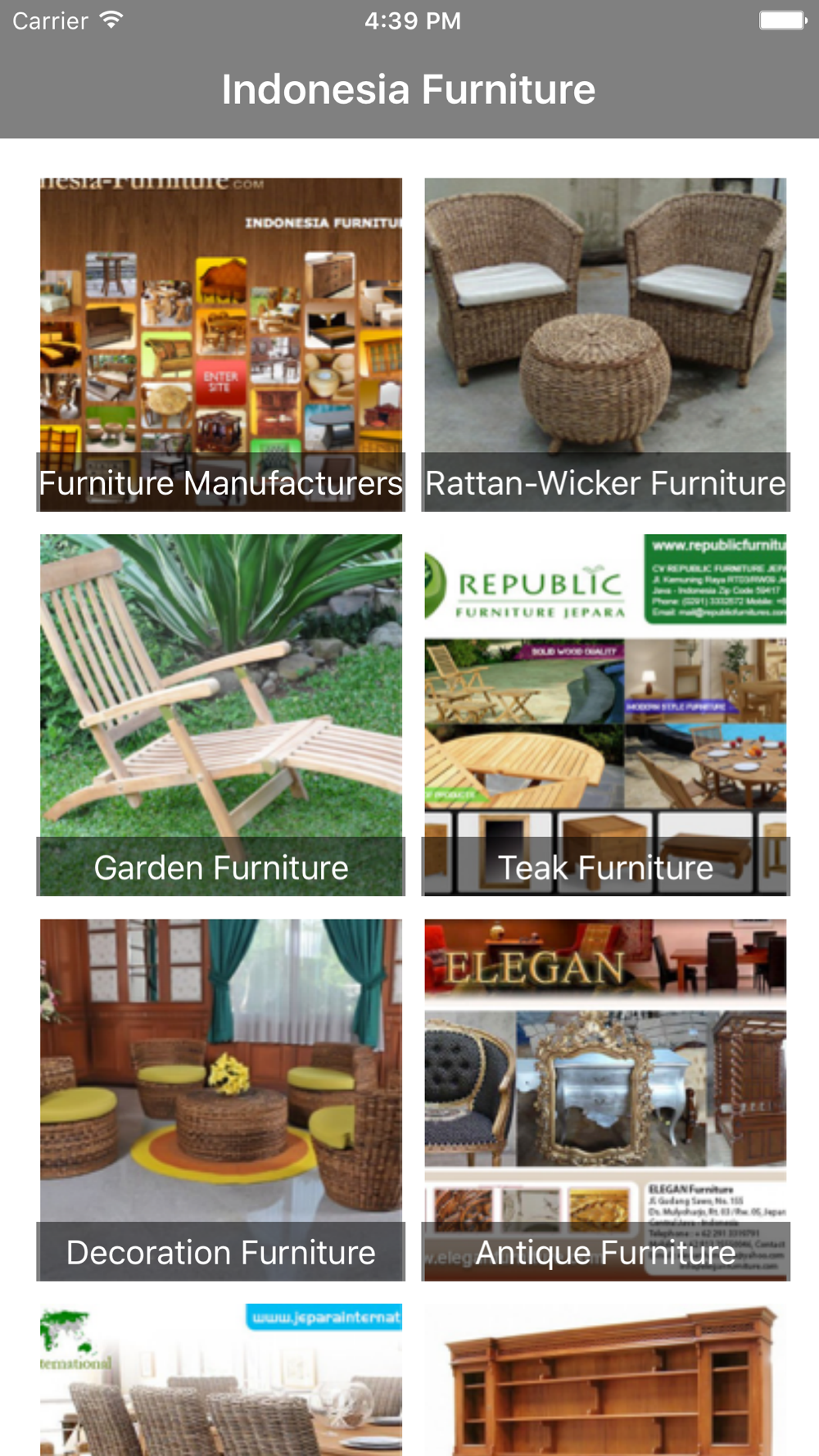 Indonesia Furniture is an application that contain of references about numbers of Indonesia furniture that made of various design and materials like wooden teak, rattan, woven, mahogany, bamboo, antique,indoor and outdoor furniture and so on. Here, there is picture that describe by related article as a reference of the product and the company short description.