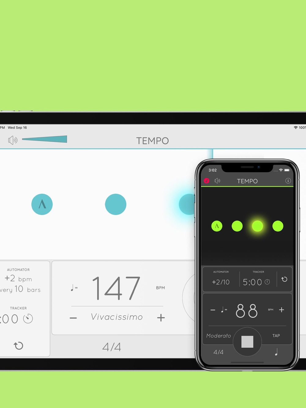 Tempo, the premier metronome app for iOS is now available as this free Lite version. Tempo was featured as "New and Noteworthy" and "Staff Favorite" by Apple on the main iTunes landing page. Now you can enjoy Tempo's core features before upgrading to its full suite of features.
