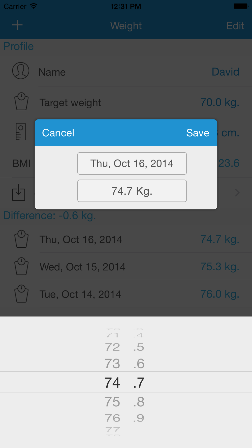 - Enter weight to a specific date